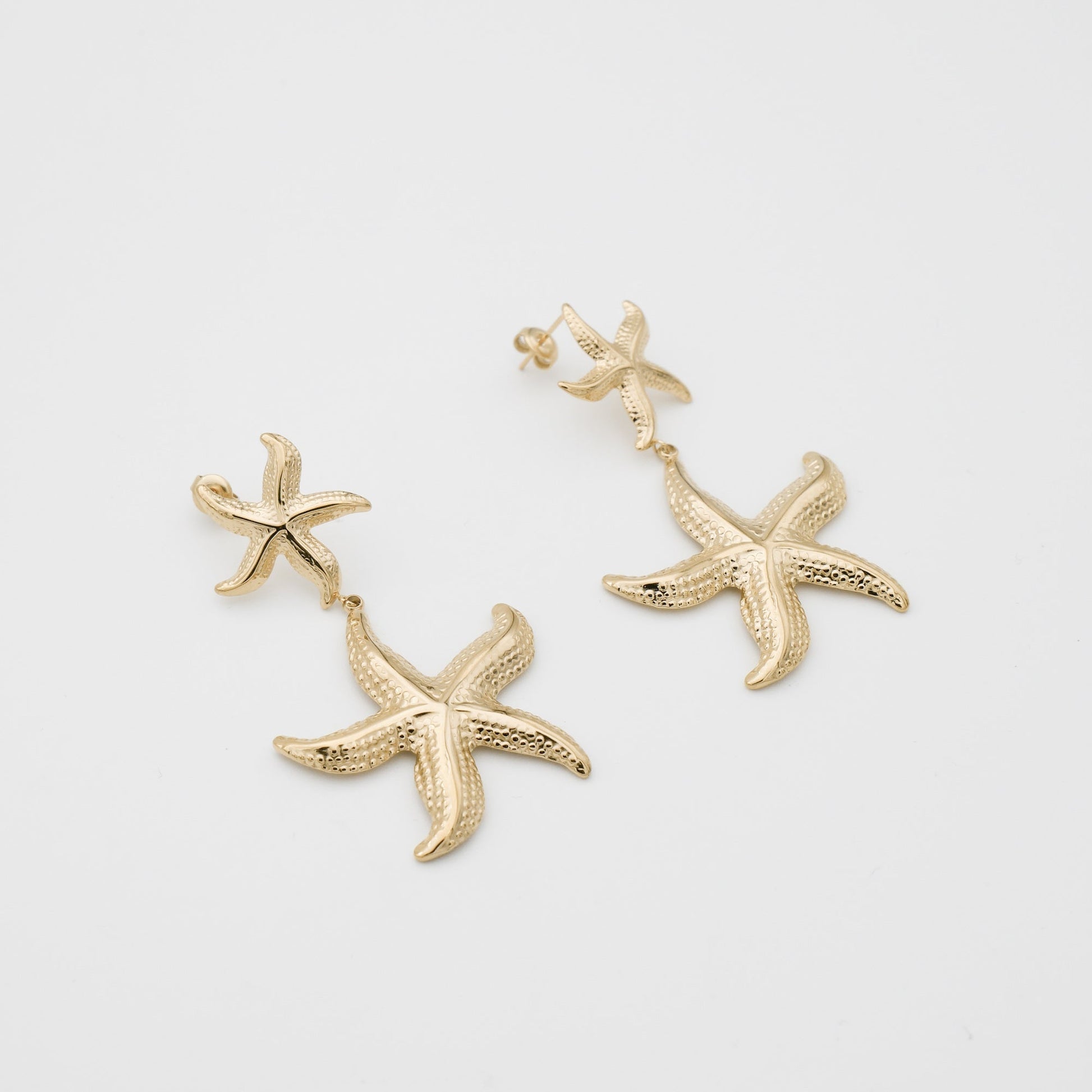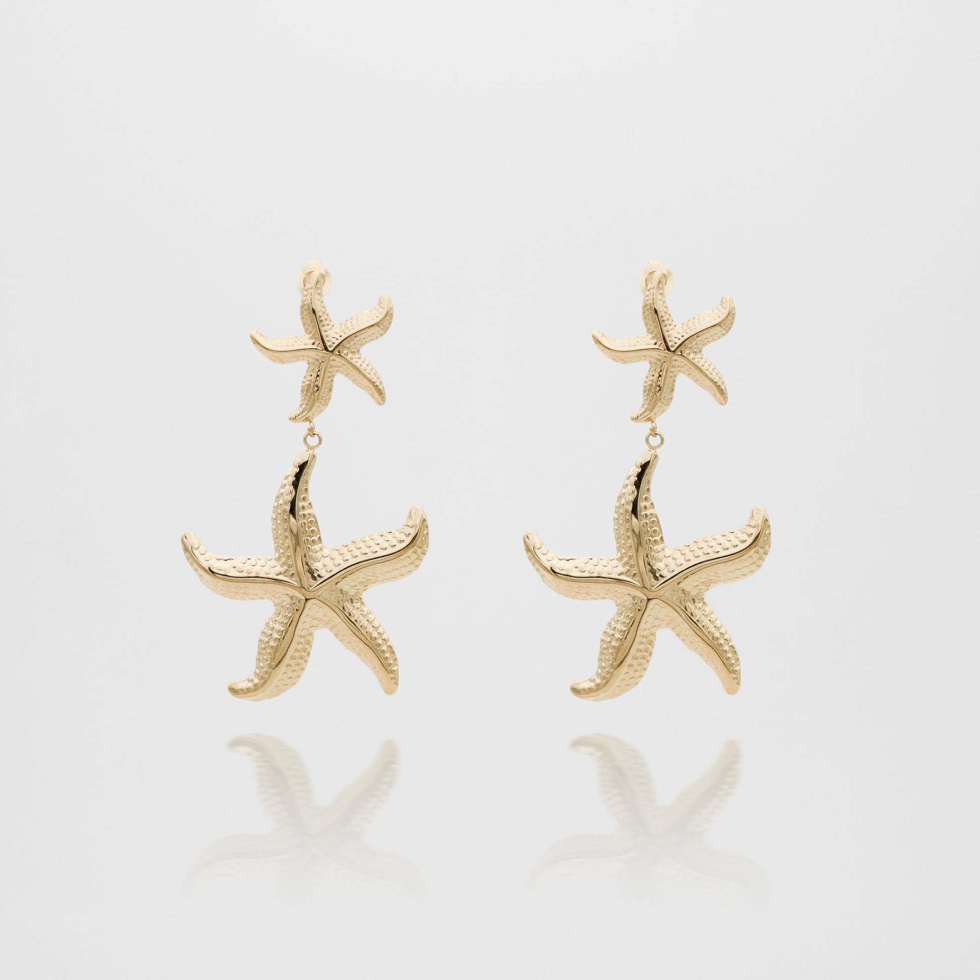 Embrace the beauty of summer with our Mira Earrings. These star fish earrings exude a coastal charm - this season's hottest trend. Effortlessly elevate your look with these statement pieces, crafted for the luxuriously stylish. Available in both 18K gold plating and silver plating.