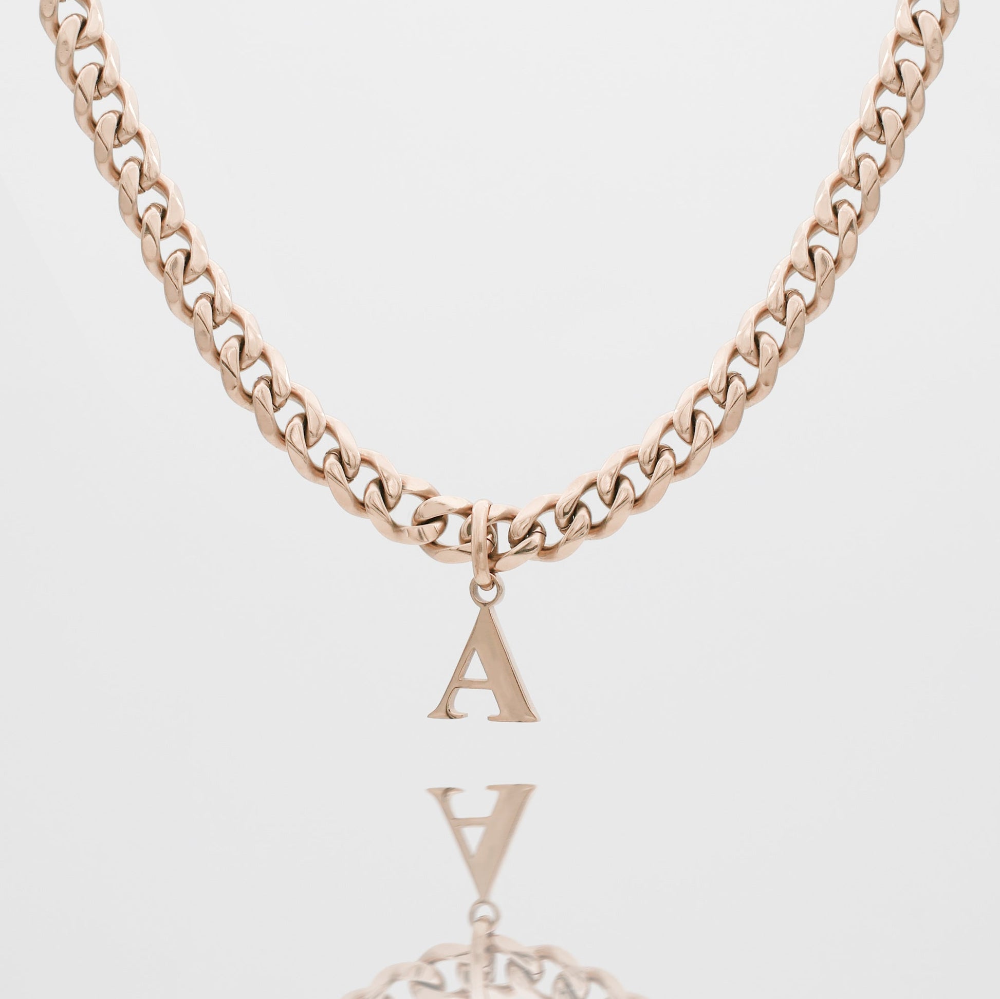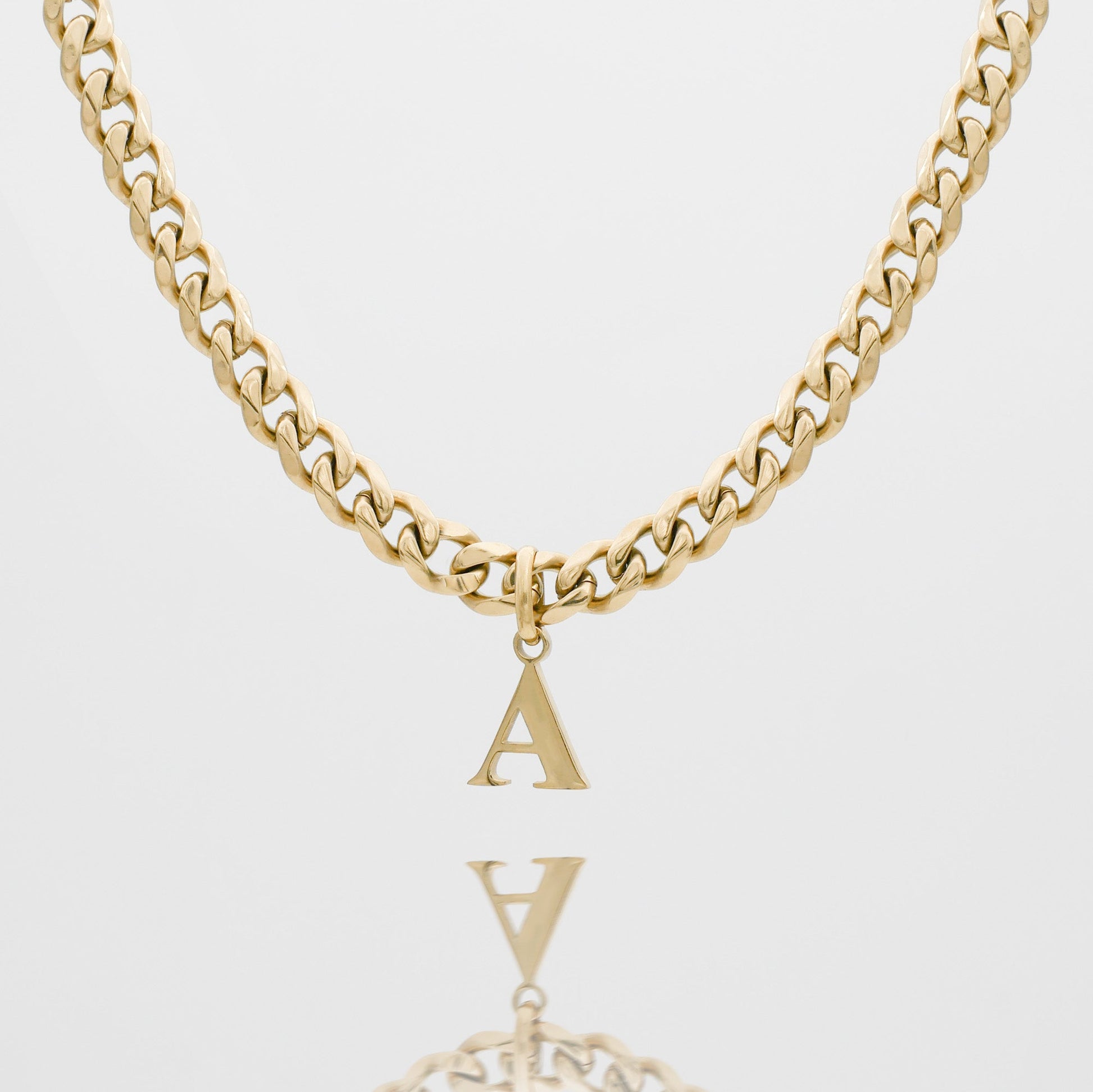 Introducing our Mya Initial necklace with our thick cuban chain. This necklace is perfect for layering or wearing on its own. The bold initial pendant is made of high quality Plated 18k Gold and hangs from a strong and sturdy cuban chain. The necklace is adjustable from 35-40 centimeters, making it the perfect fit for any outfit. Whether you're dressing up or dressing down, this necklace is a great way to add a personal touch to your look.