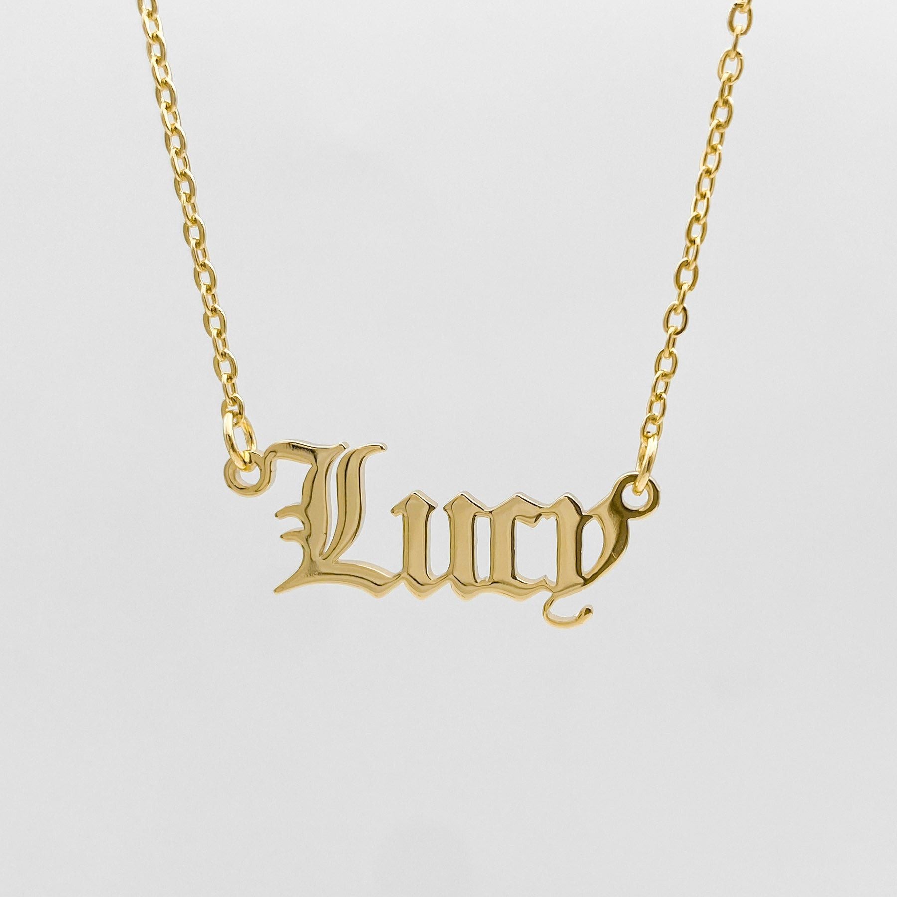 Personalise your look with our Old English Name Plate Necklace. Choose from either gold plated, or silver plated.