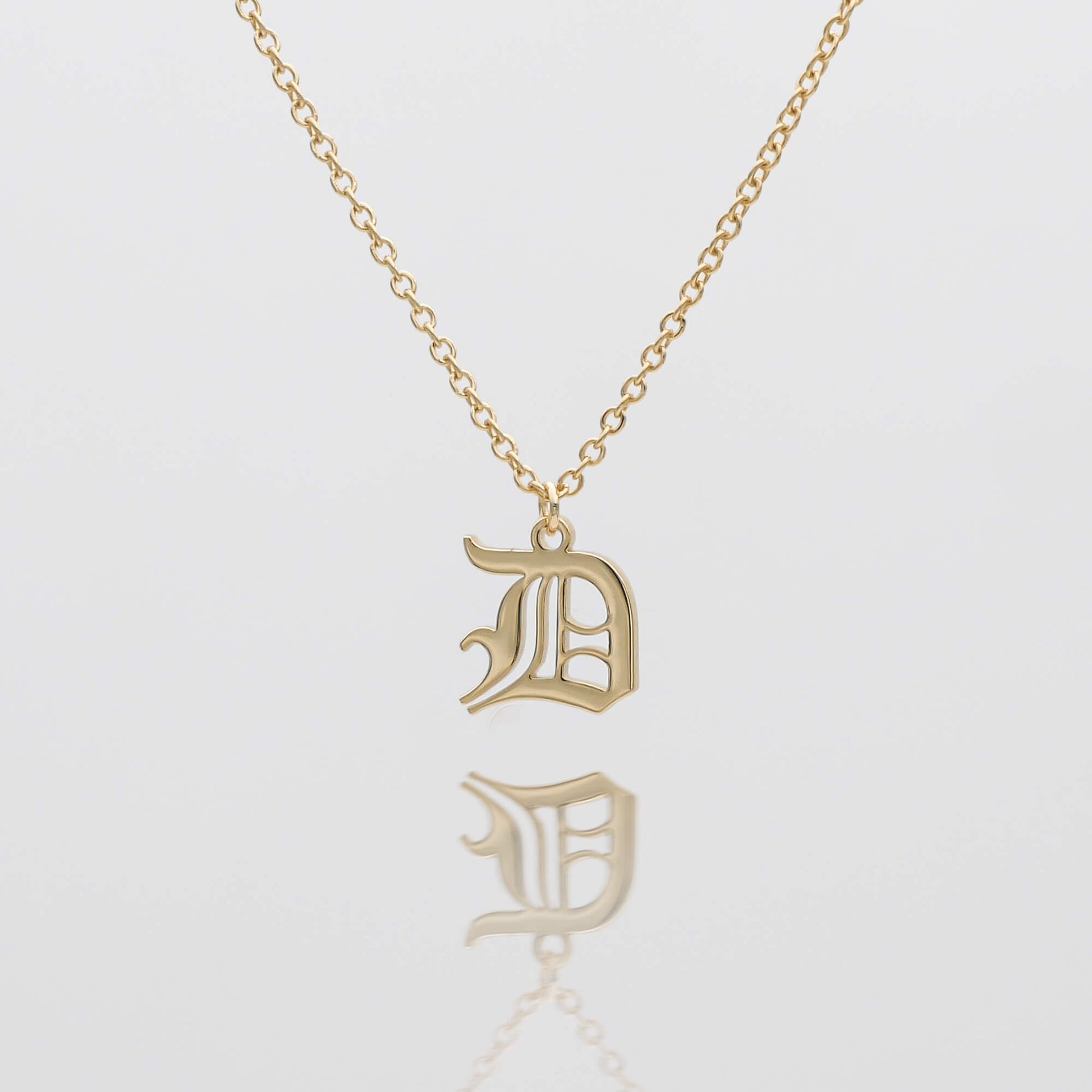 Personalise your look with our handcrafted Old English style initial necklace — a striking blend of bold design and timeless elegance.