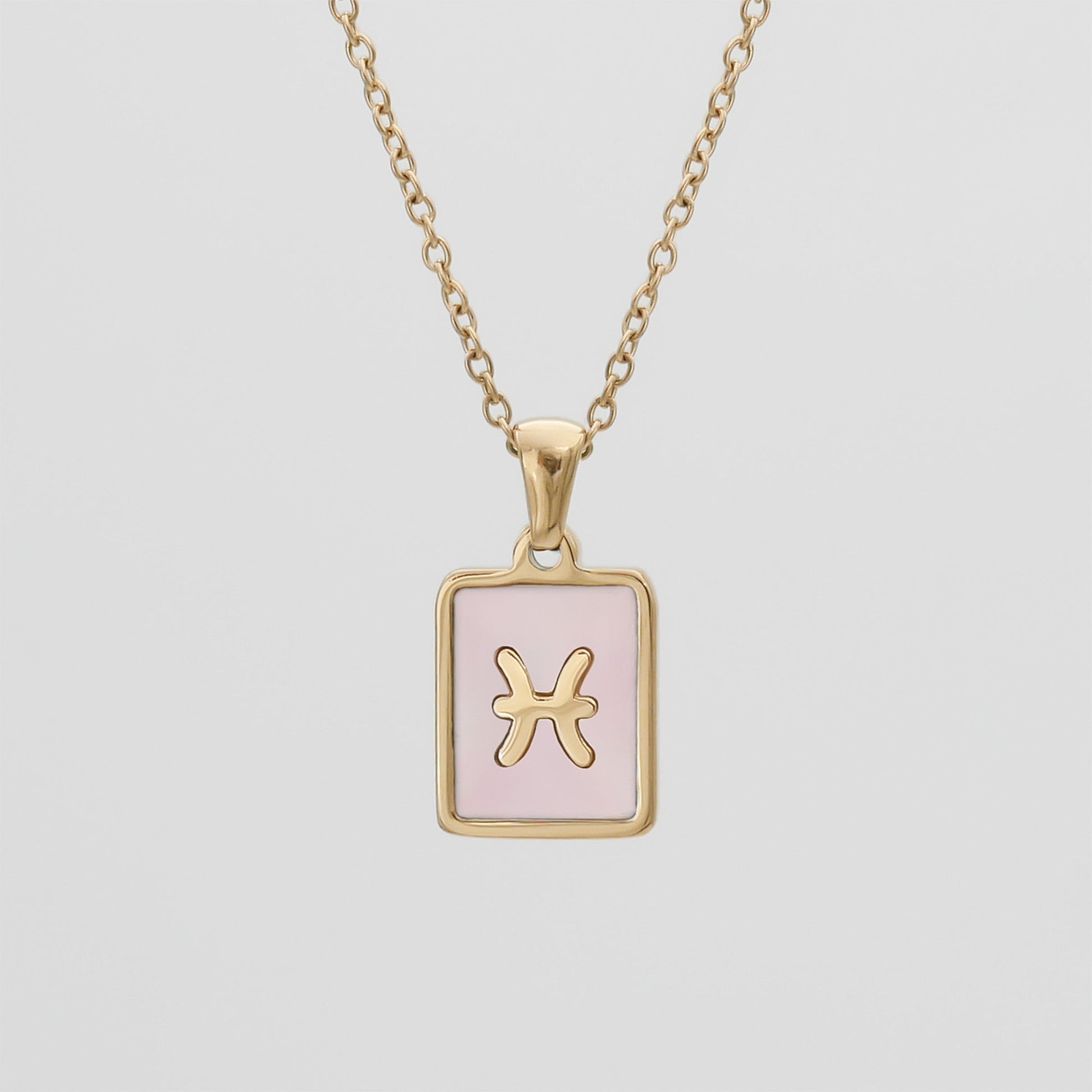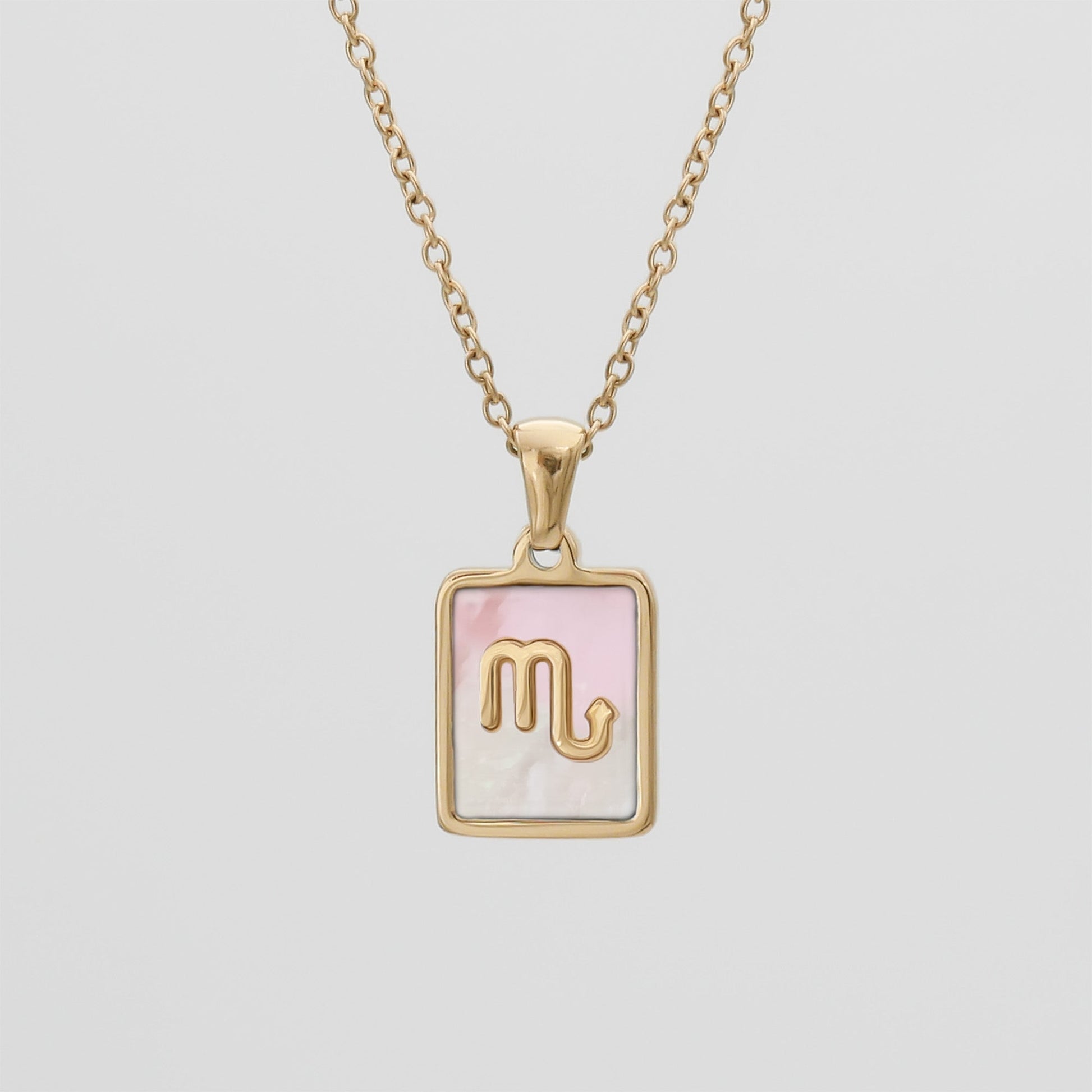 Looking for a unique and stylish way to show off your astrological sign? Look no further than this gorgeous 18k gold plated zodiac pendant necklace! The pendant is set in pearlescent pink base, and is tarnish-free, so you can wear it with confidence knowing it will always look its best.