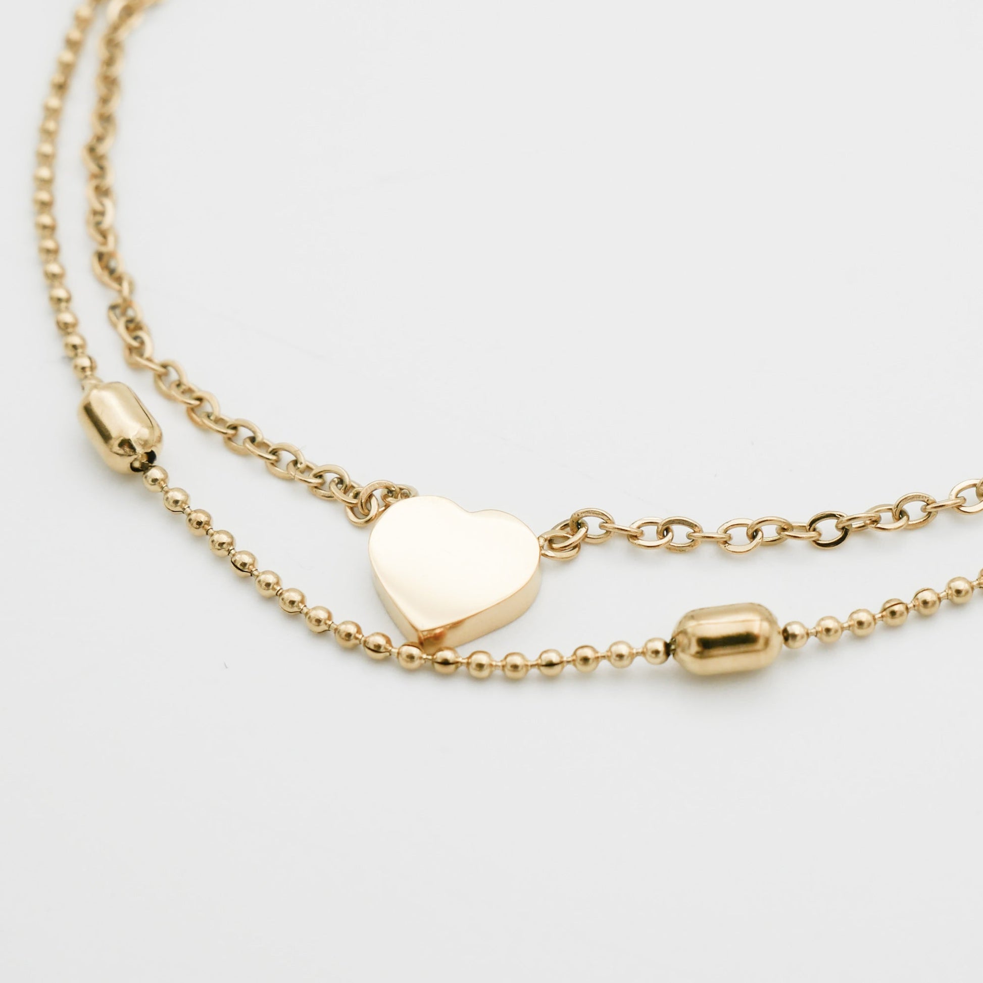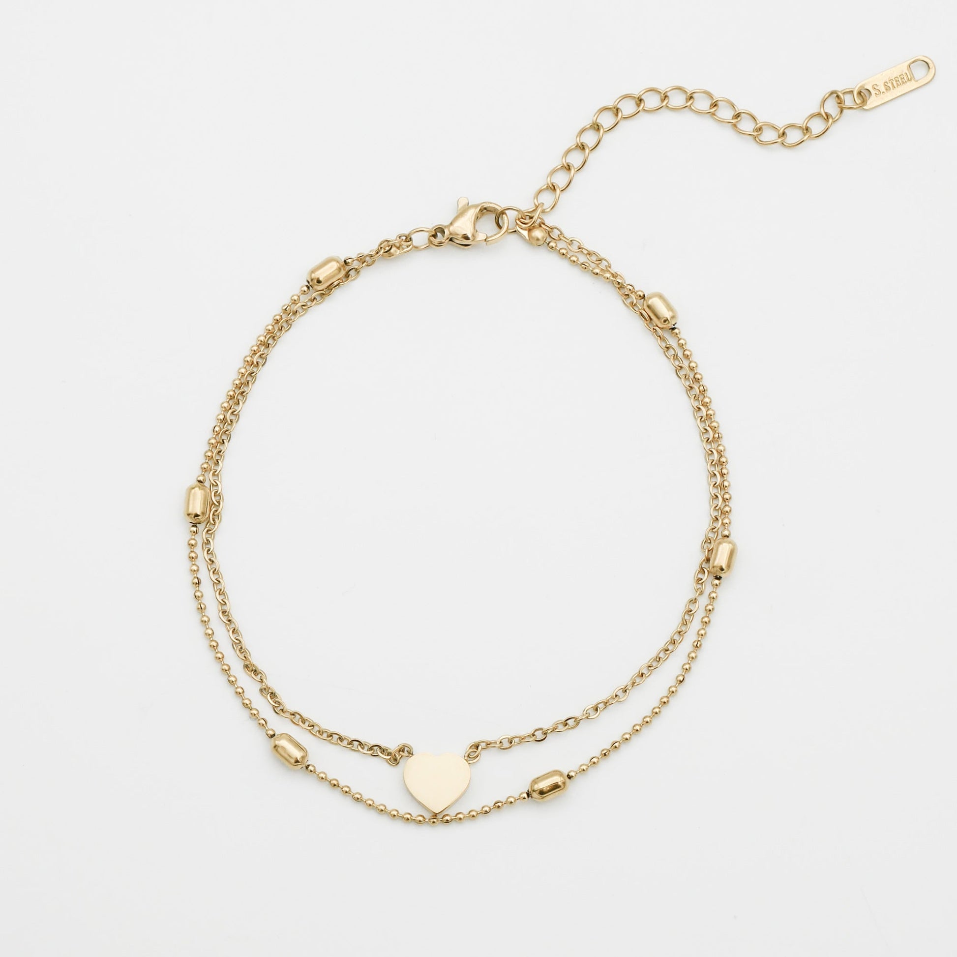 The Raisa Anklet stands out from the crowd with its exquisite heart charm, unique chainstyle, and gold finish. Show your love with this eye-catching statement piece, crafted with exceptional attention to detail.