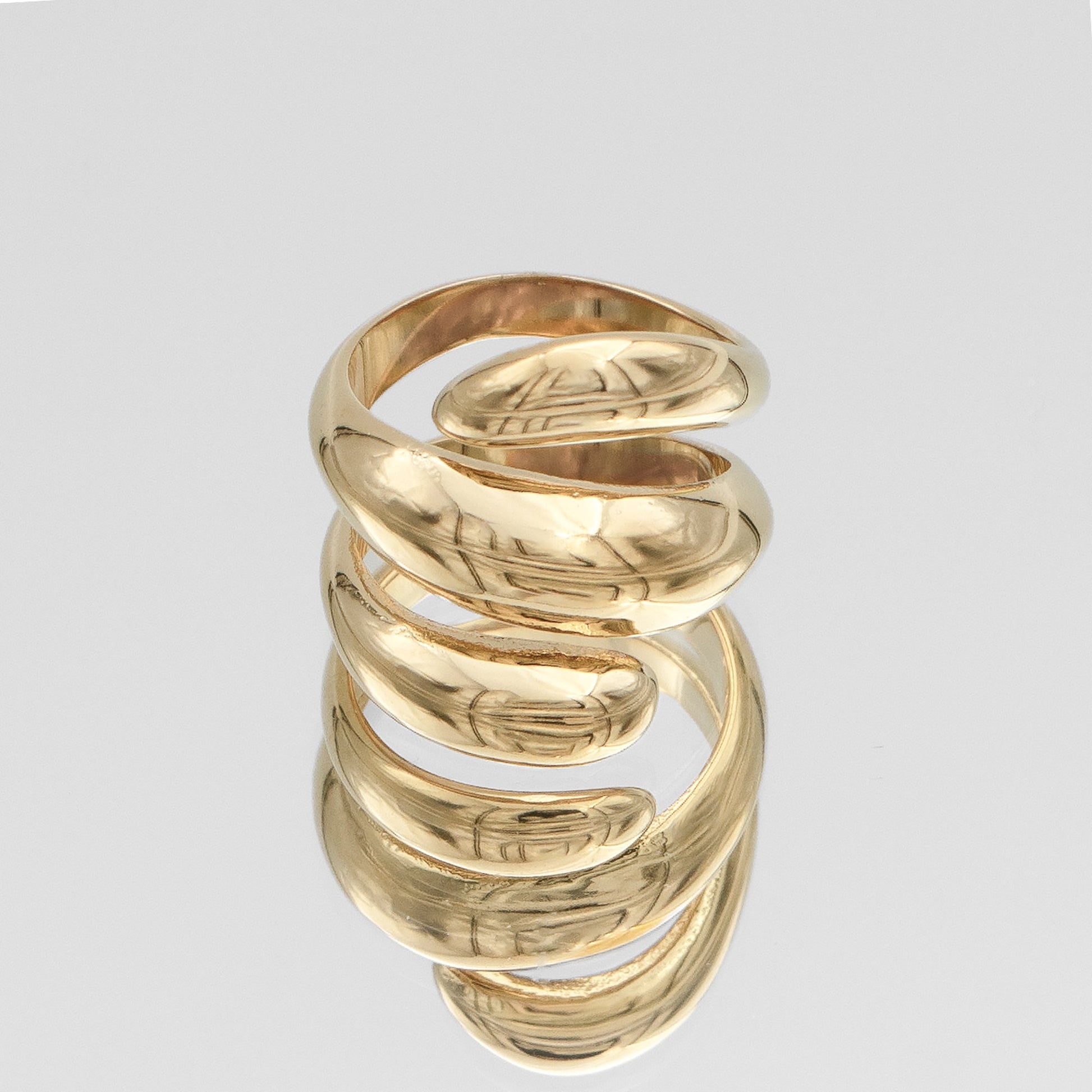 Elevate your style with our Chunky Gold Crossover Wrap Ring, showcasing triple textured bands in a striking triple-wrap design. Combining contemporary refinement with a sculptural form, this crossover band ring is an ideal addition for layering or wearing on its own.