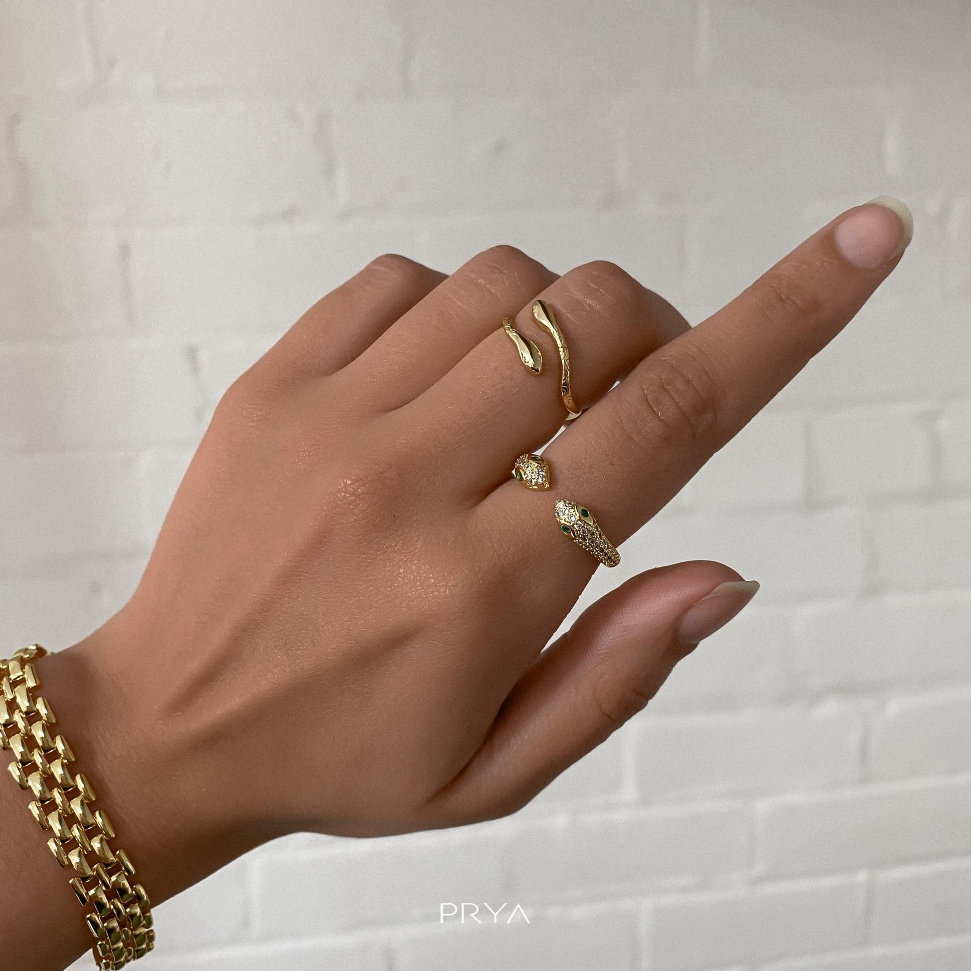 The Sadie Snake ring features intricate details, creating the perfect balance of sophistication and style. Its adjustable design allows you to wear the ring on any finger or stack it with other rings and watch it glisten.