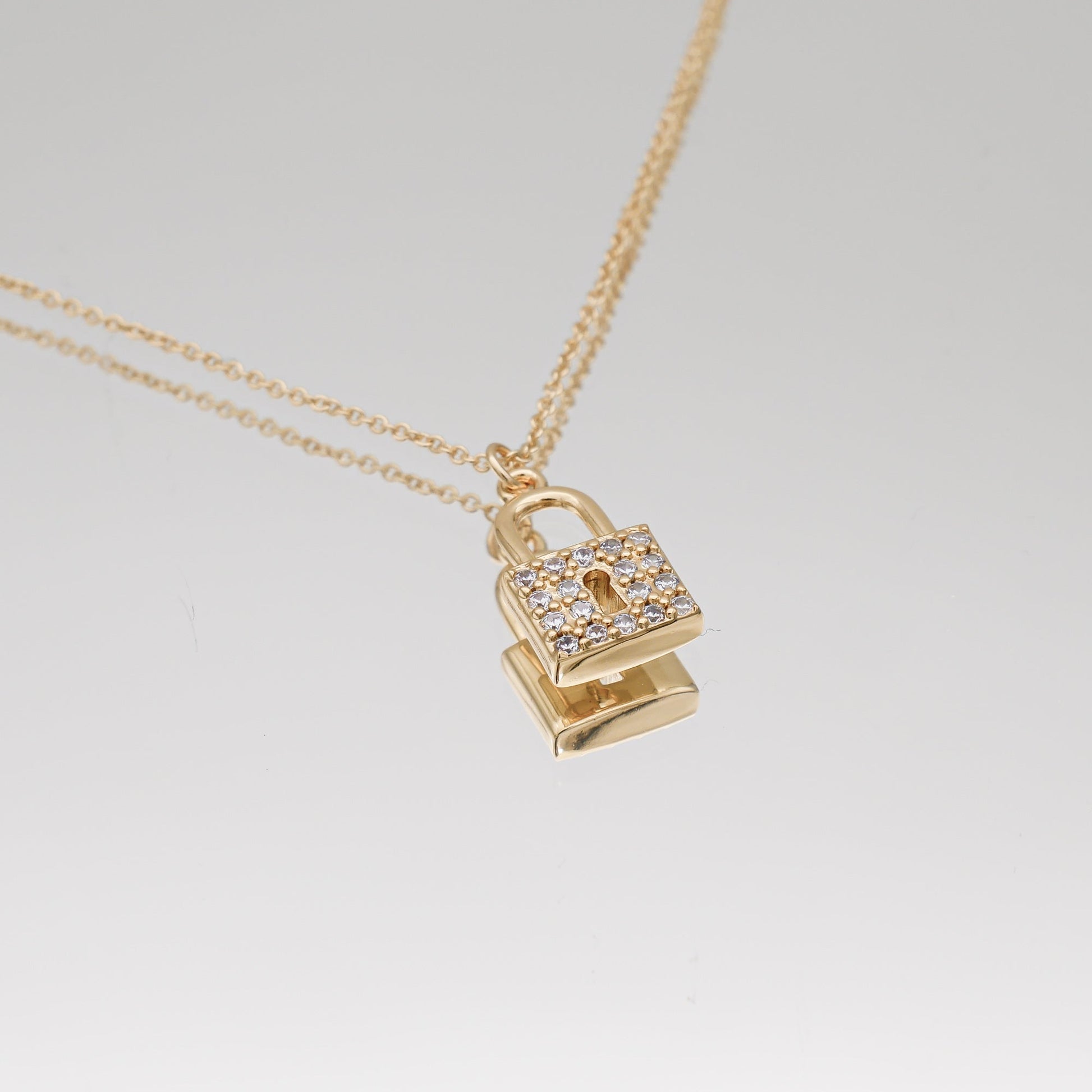A romantic token, symbolising love, strength and security. Our Sarai lock necklace has been crafted to perfection. Featuring a cut out small lock design and decorated with CZ diamonds along with a stylish delicate chain, this necklace makes the perfect sentiment of love to gift to someone special or a gift to yourself.