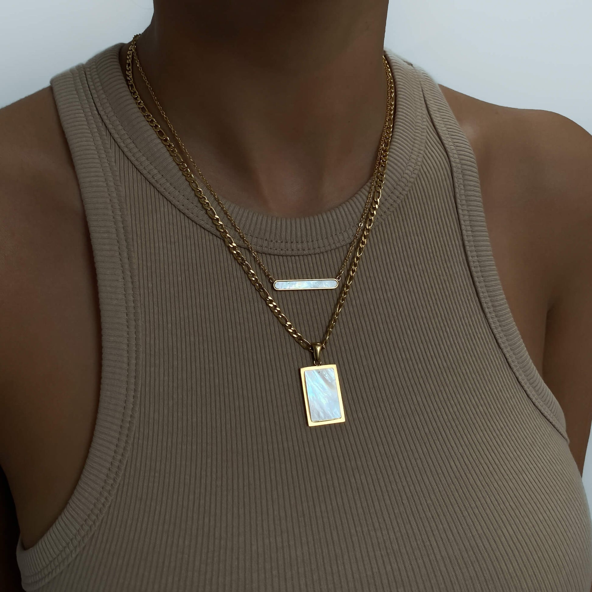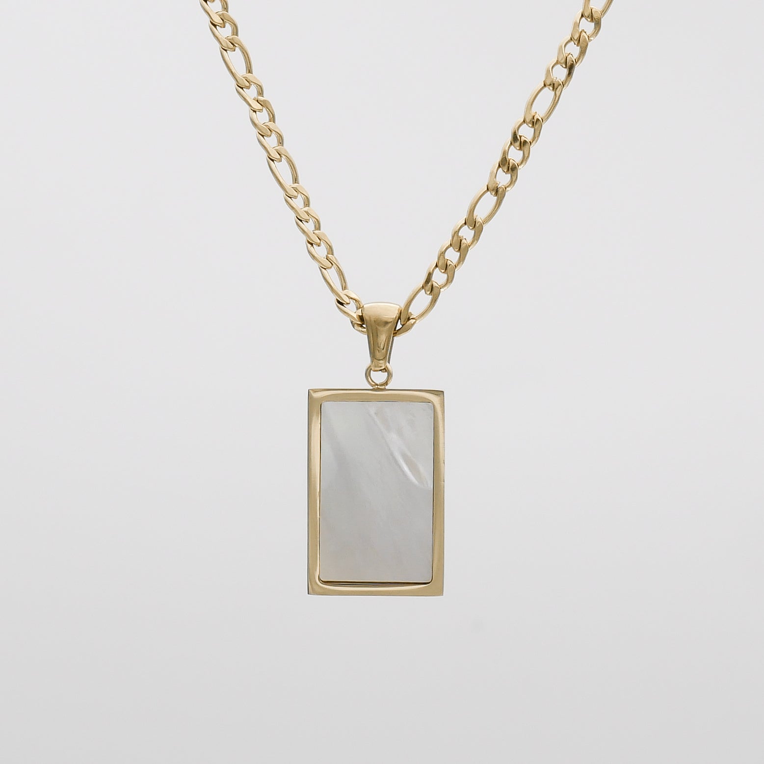 This statement Necklace features a stunning onyx stone set inside a 18k gold plated tablet & suspended on our figaro chain.