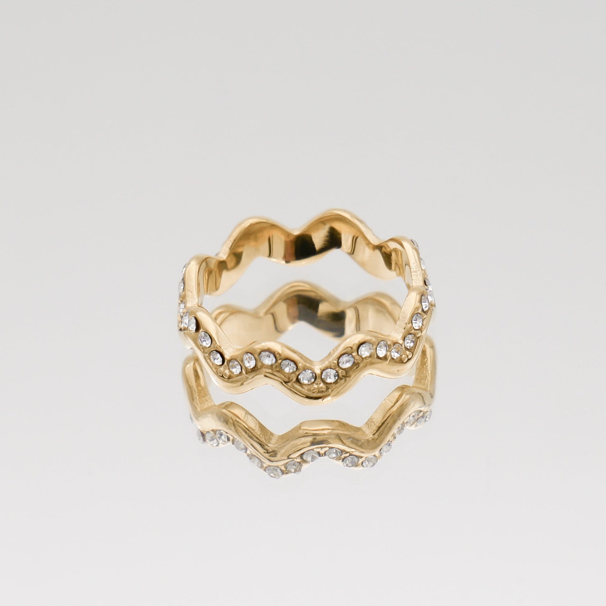 Indulge in luxury with the Sayla Ring. This beautiful gold ring featuring a unique shape adorned with sparkling CZ stones, making it a true statement piece. Elevate any outfit with this exclusive design that exudes elegance and sophistication.