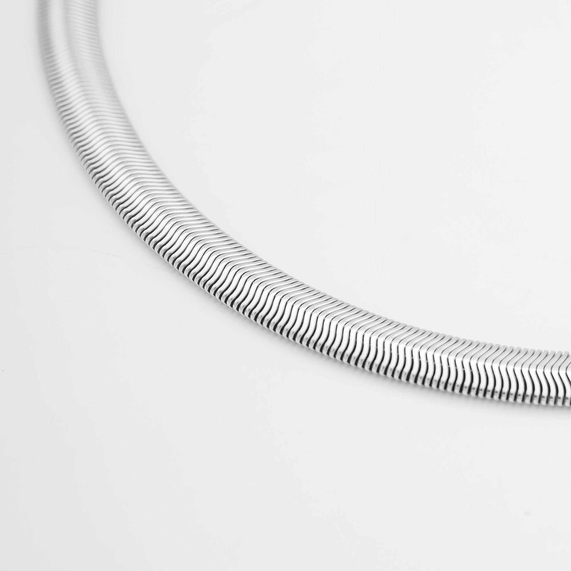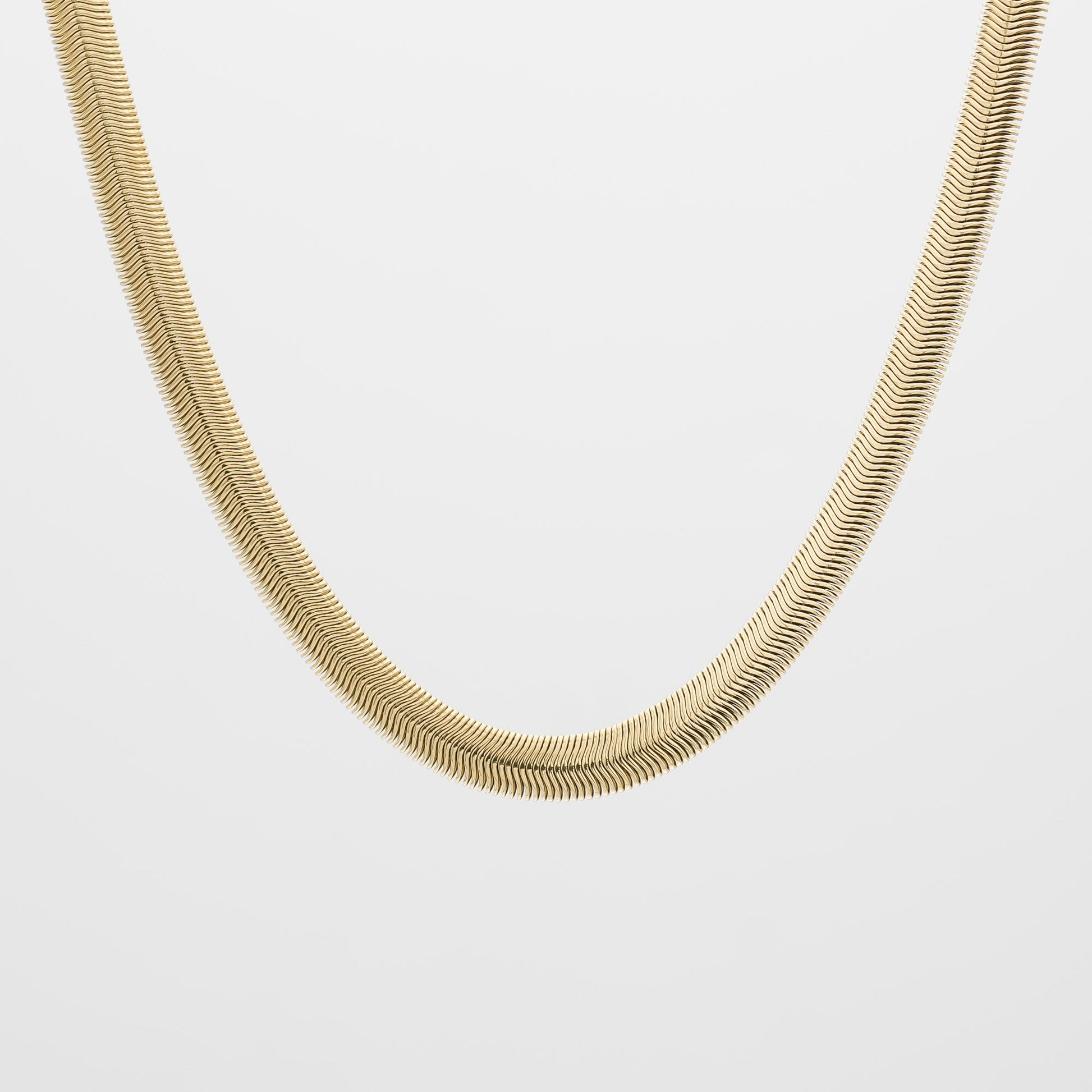 Perfect for stacking or styling alone, our Skyla Chunky Herringbone Necklace is a versatile, beautifully crafted piece. Featuring a detailed thick snake chain formed from a seamless string of flat, densely packed links with a high-polished finish that glitters as it catches the light. The clean, contemporary design makes an elegant addition to any jewellery curation - style it solo for a minimal everyday look, or layer it with more statement Necklaces.