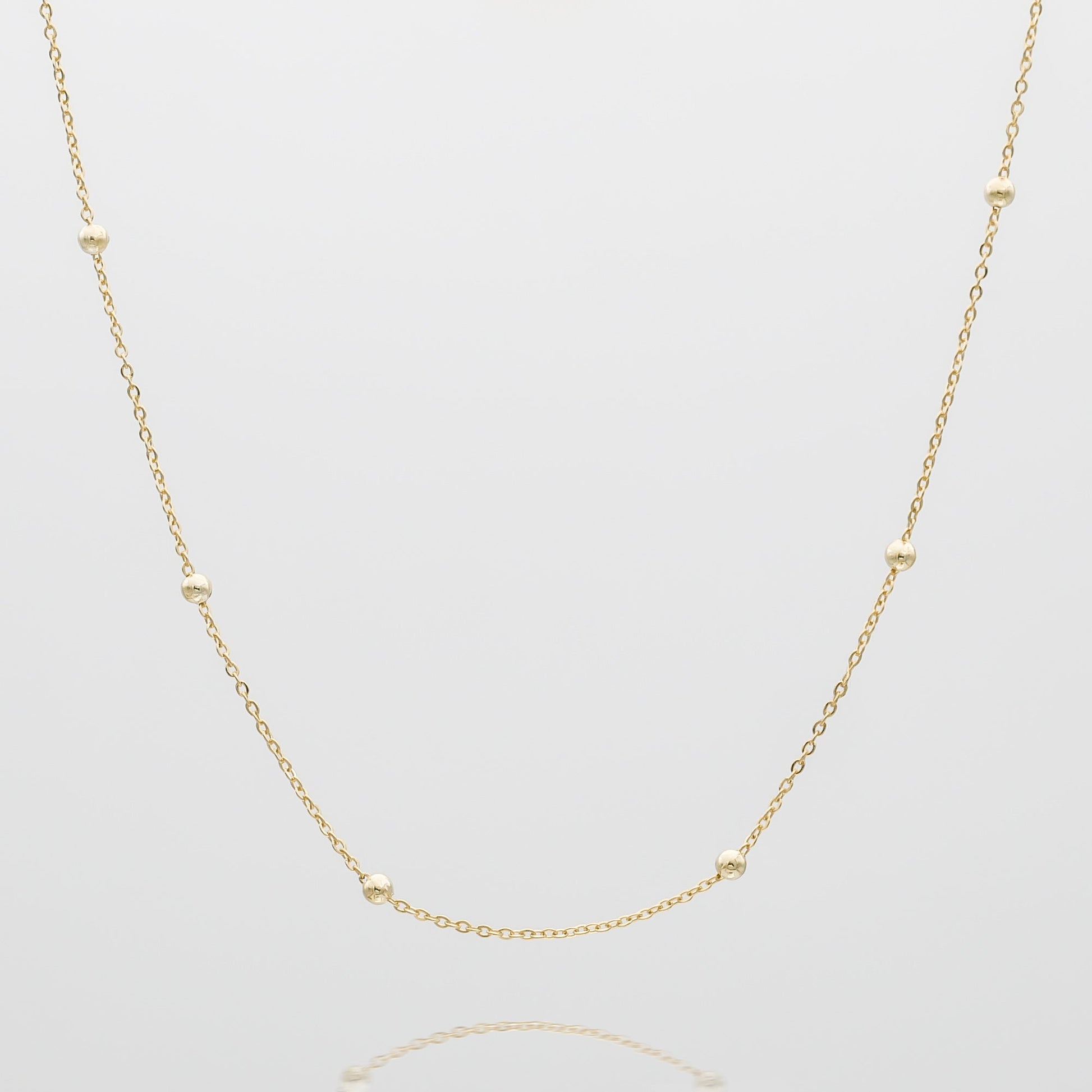 The PRYA Sphere Beaded Necklace offers effortless elegance and eye-catching beauty. Featuring staggered sphere beads throughout, this beautiful necklace can be layered or used as a base for a pendant, making it perfect for any style. Crafted from high-quality materials, this luxury necklace adds a touch of sophistication to any look.