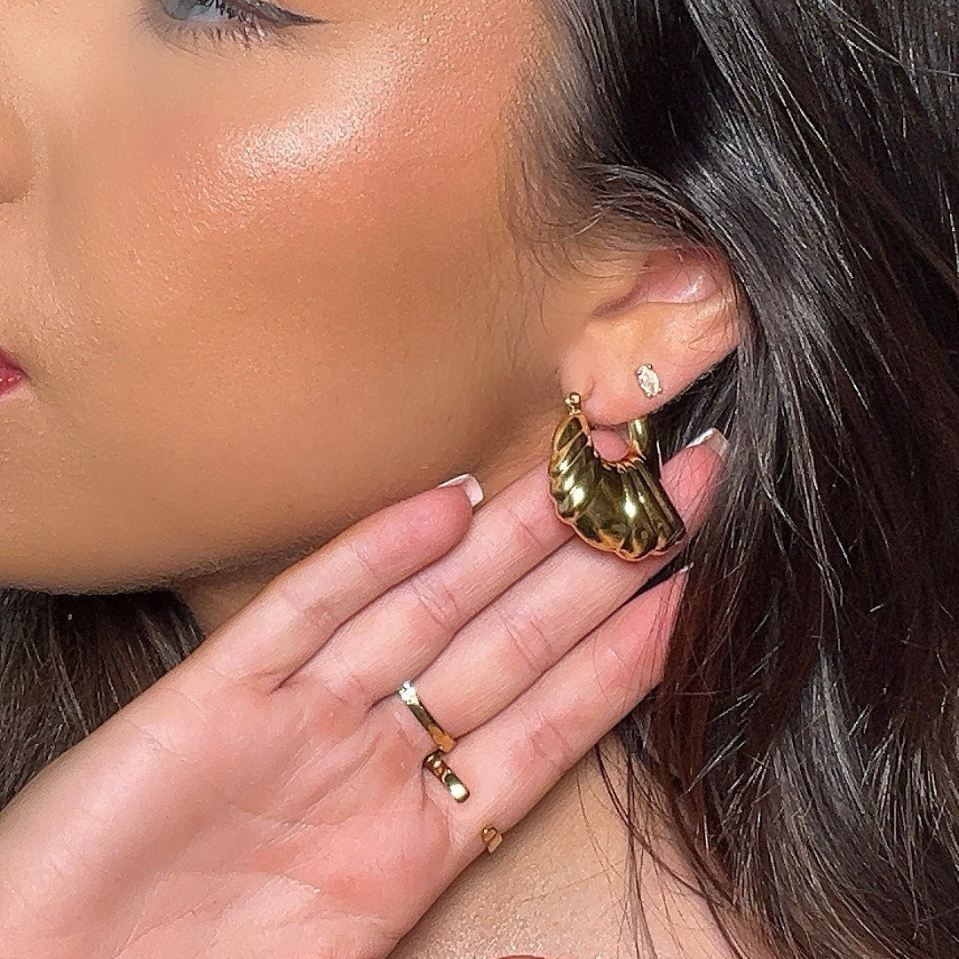Elevate your style with our Yara Earrings. These ribbed, asymmetric hoops make a beautiful statement, while their abstract design adds a touch of uniqueness. Choose from 18k gold plating or silver for a luxurious finish. These are more than just earrings, they're a show-stopping statement.