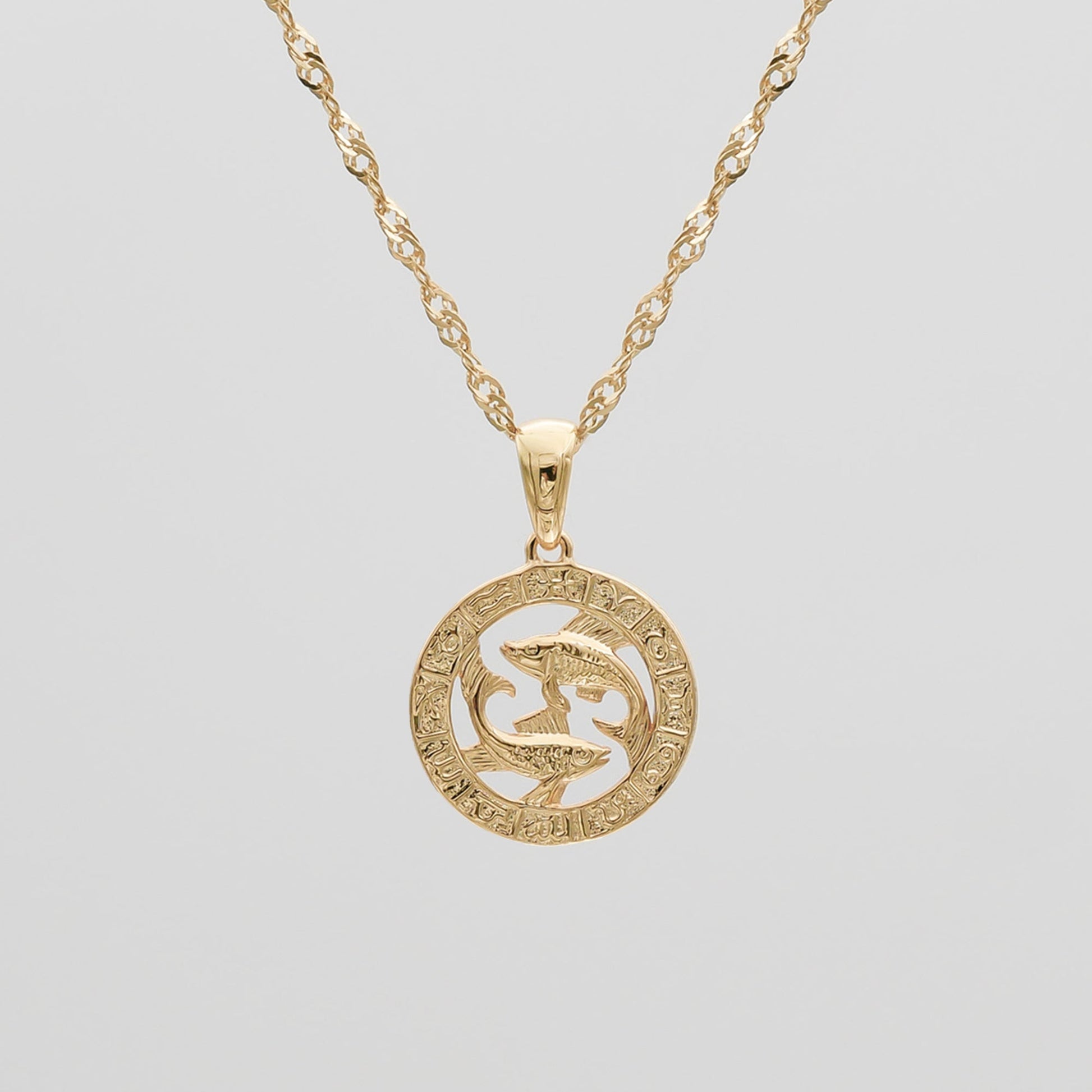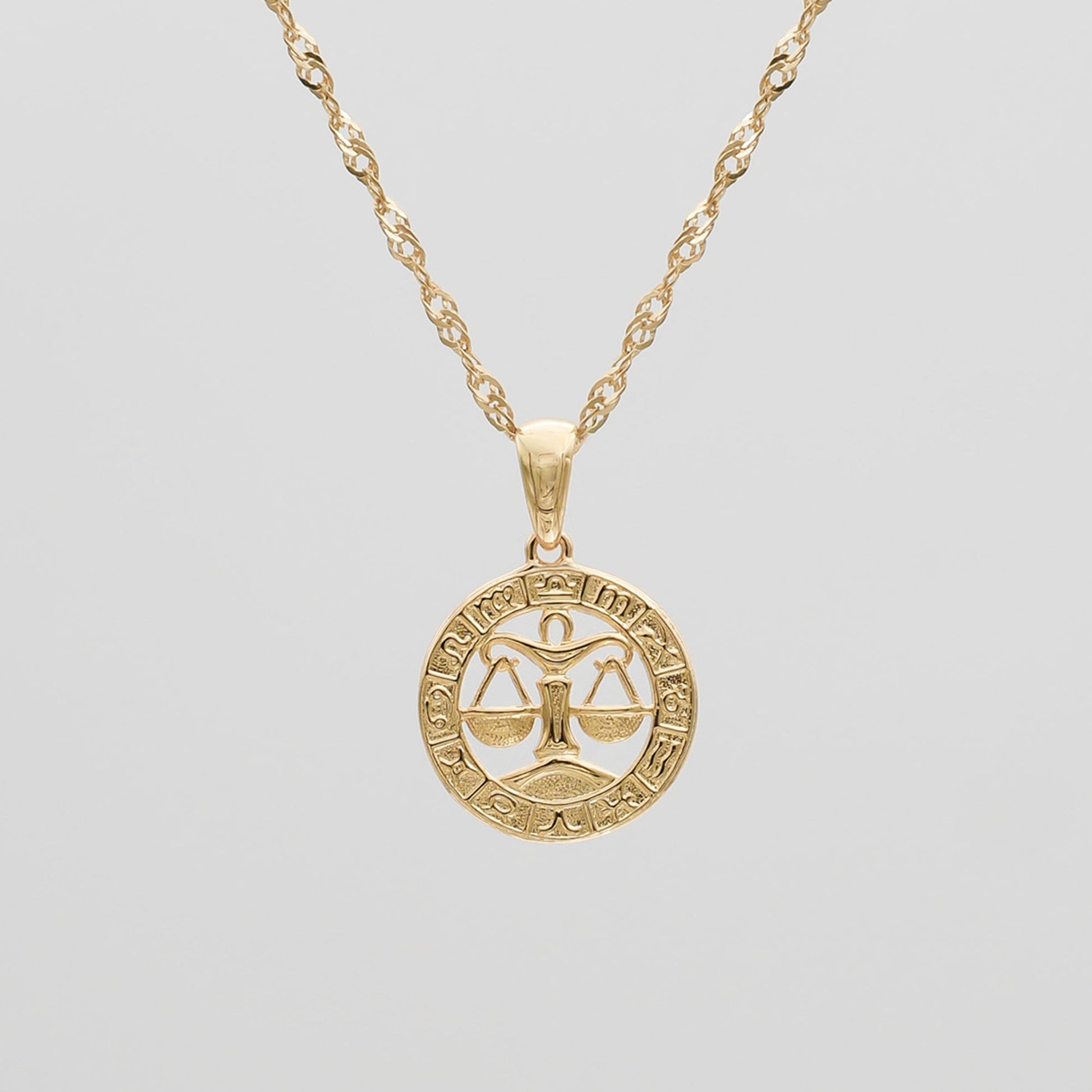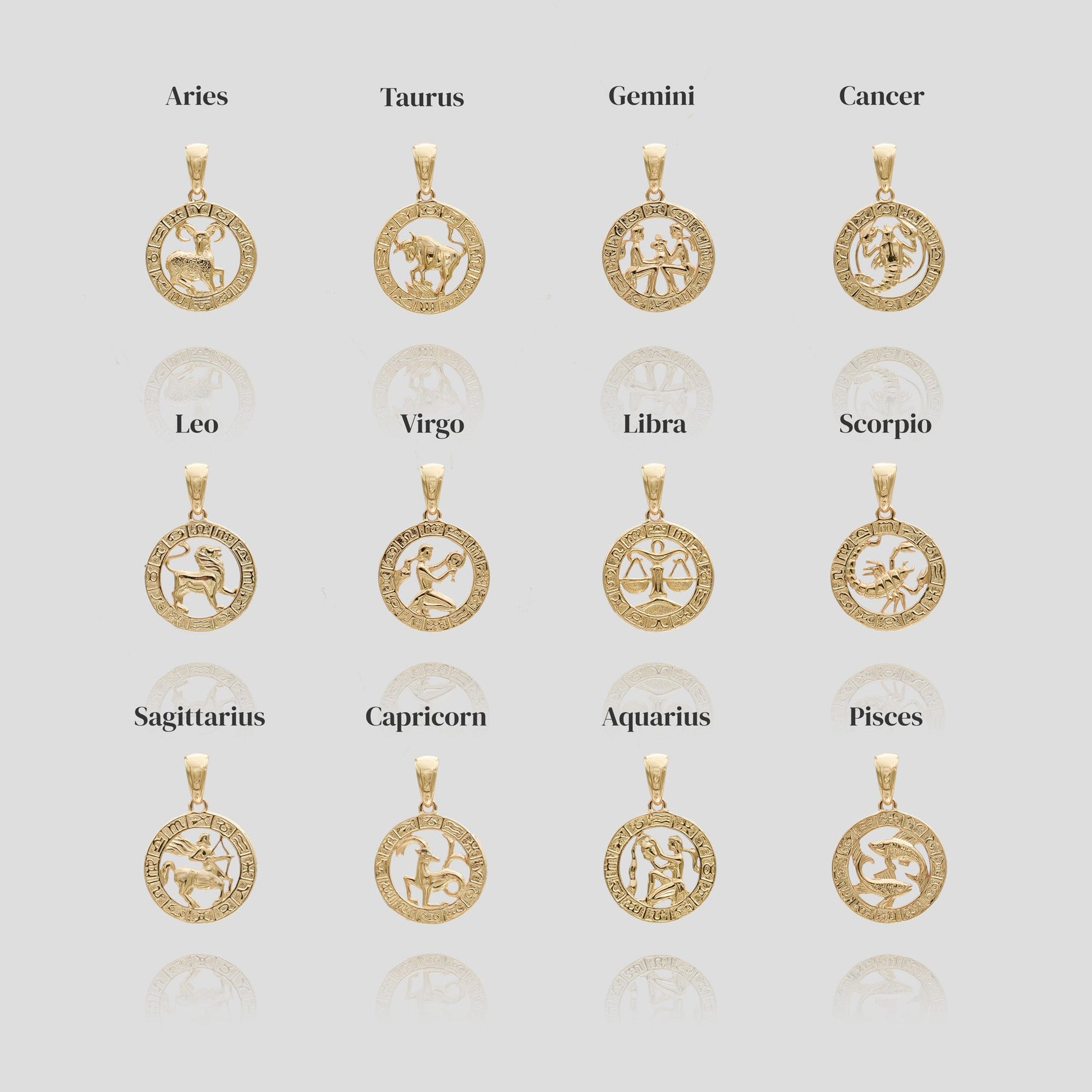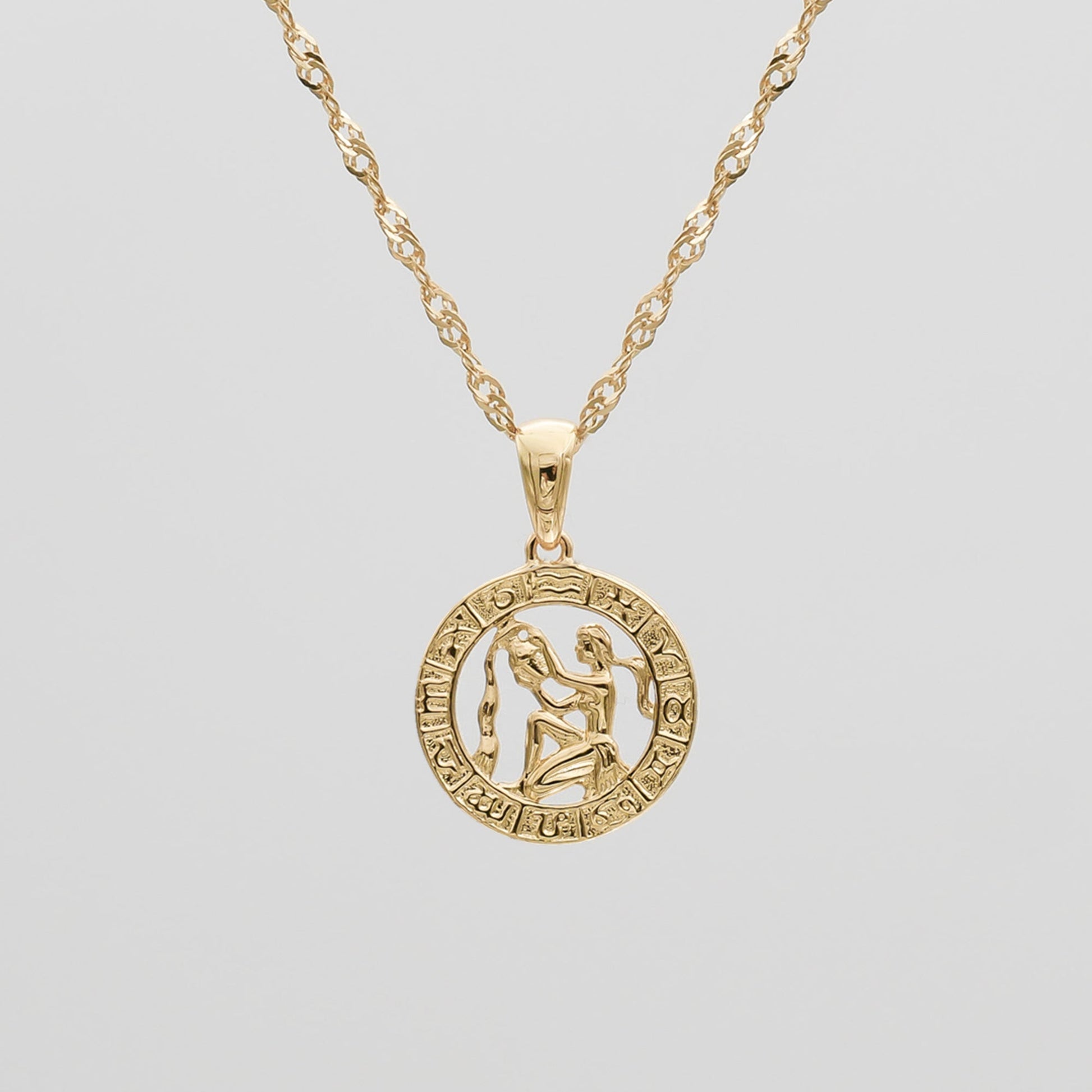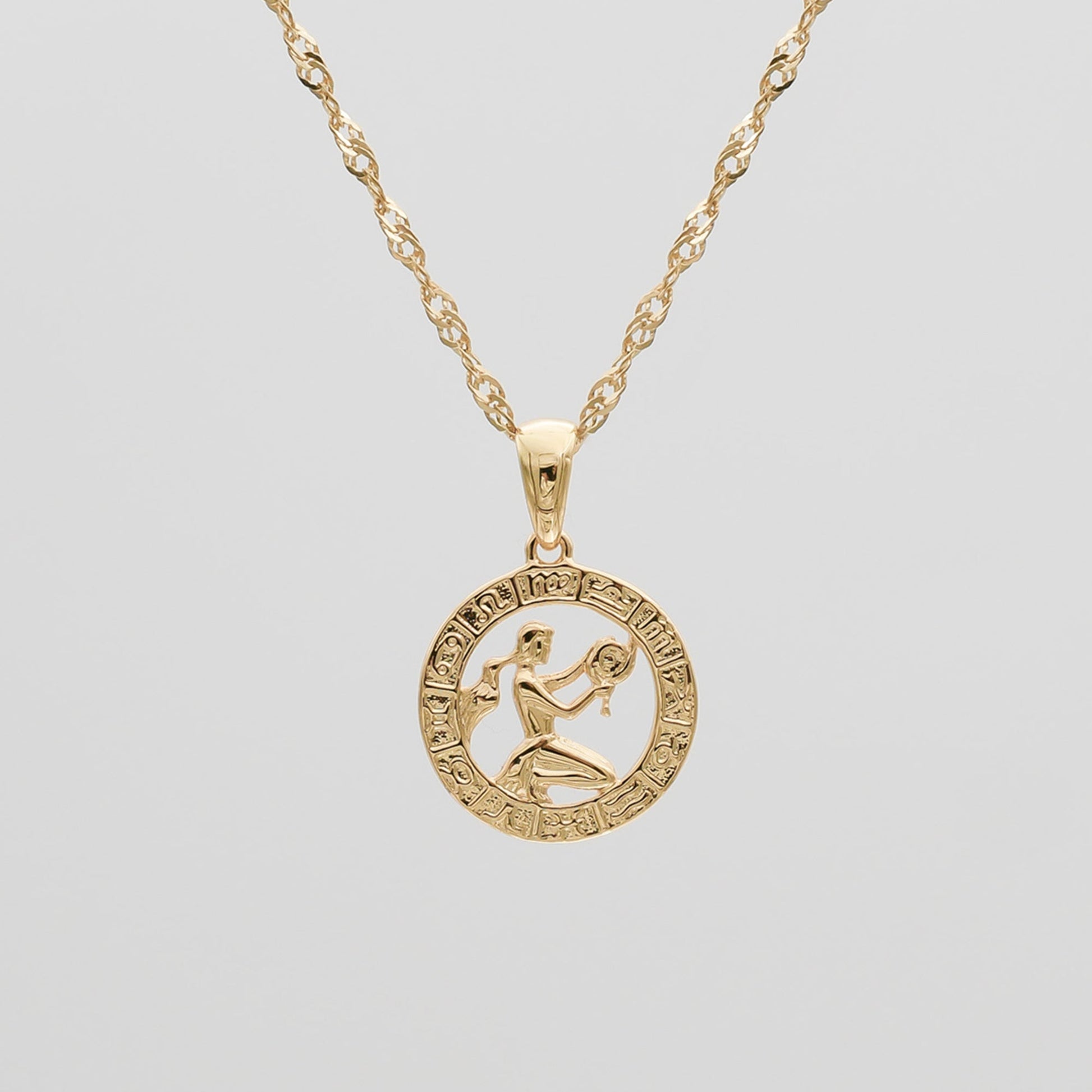 Indulge in the beauty of your astrological sign with our Zodiac Necklace, a beloved pendant from our exquisite zodiac jewellery collection. This charming necklace highlights a lustrous gold charm with a delicate cutout of your chosen zodiac symbol, gracefully enclosed in a circular frame. Dangling from a distinctive water wave chain, each charm is accentuated by a glistening clasp that pairs flawlessly with the intricate design of the chain, creating a polished and exclusive piece for your jewellery collection. Select the star sign that represents your birth month, or surprise a special someone with a personalised and thoughtful present. This timeless accessory celebrates individuality and connection to the universe, making it a treasured gift for any woman.