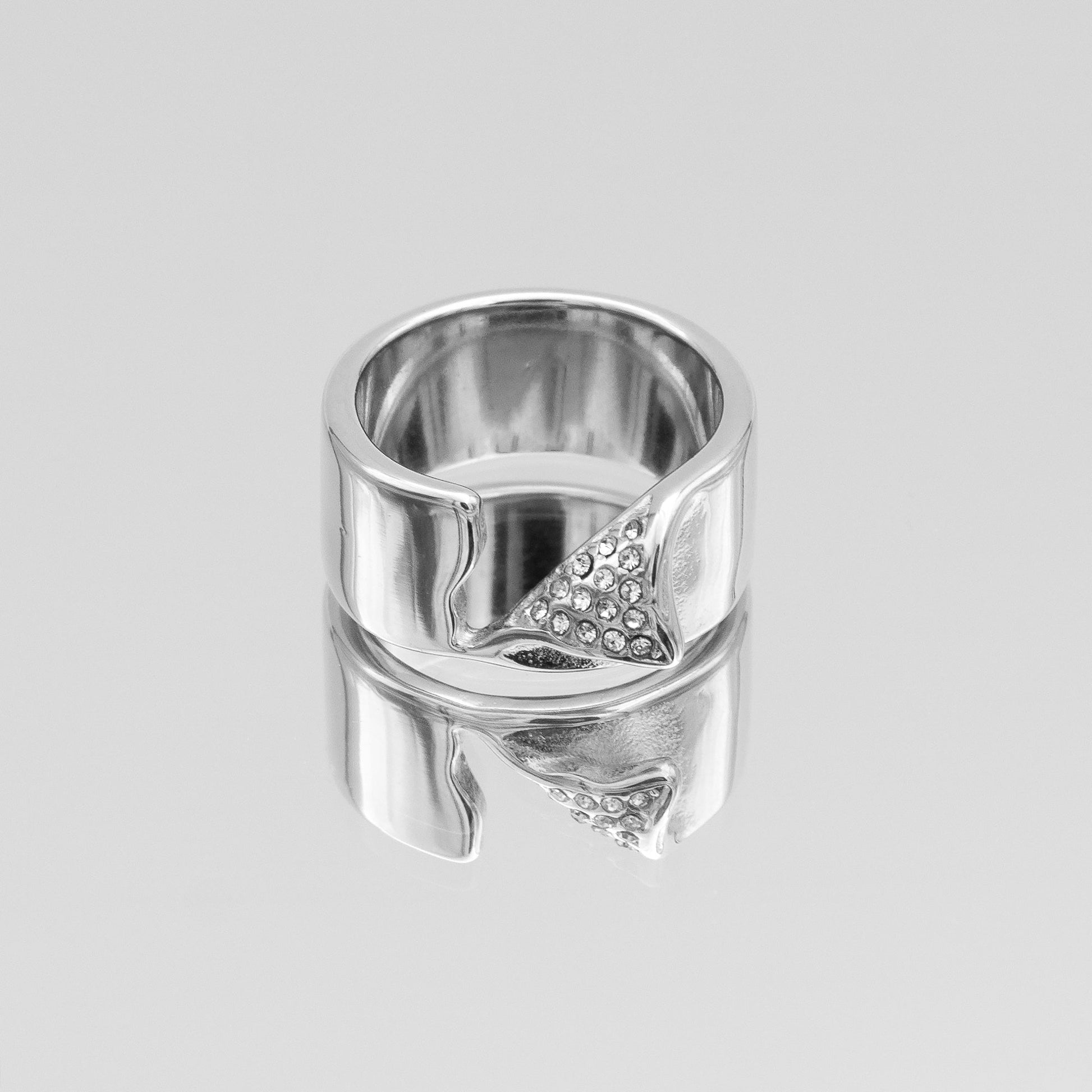 Elevate your style with the Zuri Cut-Out Band Ring. The wide asymmetrical band boasts smooth, flowing curves and a modern shape, enhanced with shimmering CZ stones that unravel and catch the light. Make a bold and sophisticated statement with this contemporary ring.